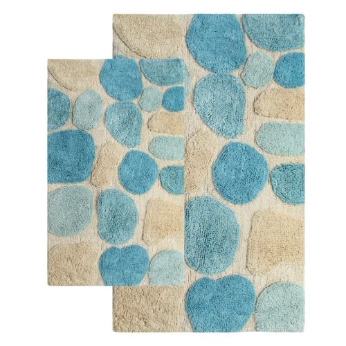 bath rugs : Chesapeake 2-Piece Pebbles 21-Inch by 34-Inch and 24-Inch by 40-Inch Bath Rug Set, AquamarineList Price: $ 49.99